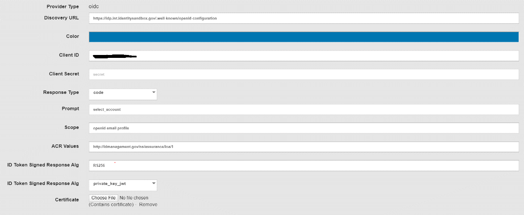 Discovery URL: https://idp.int.identitysandbox.gov/.well-known/openid-configuration